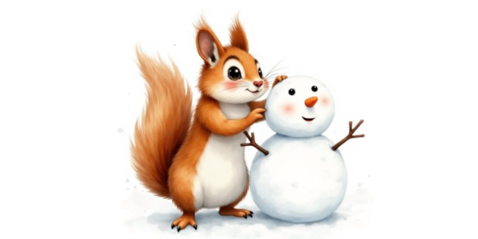 This morning’s Daily Doodle stars a very busy squirrel who decided winter needed a little extra magic. While everyone else was curled up inside, he rolled snowballs nearly twice his size, stopping often to admire his work and snack on an acorn or two. With twig arms carefully placed and a scarf borrowed from who-knows-where, the snowman slowly came to life under falling snowflakes.